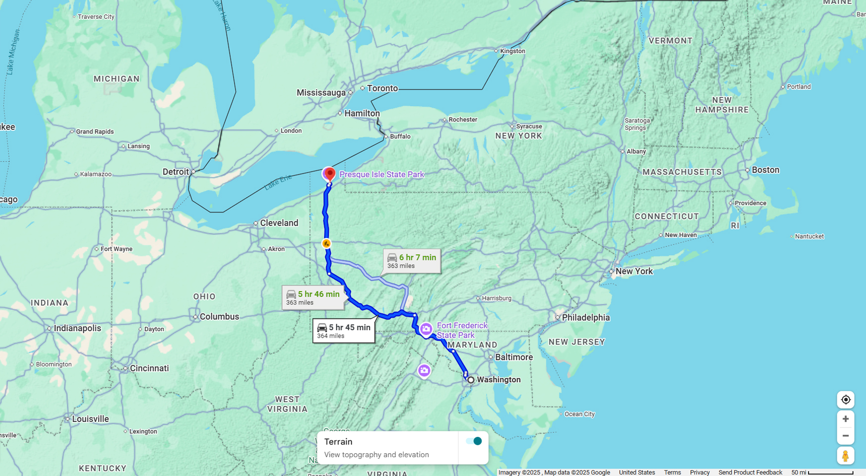 WASHINGTON D.C. TO VERMONT, BY WAY OF ERIE, PA?