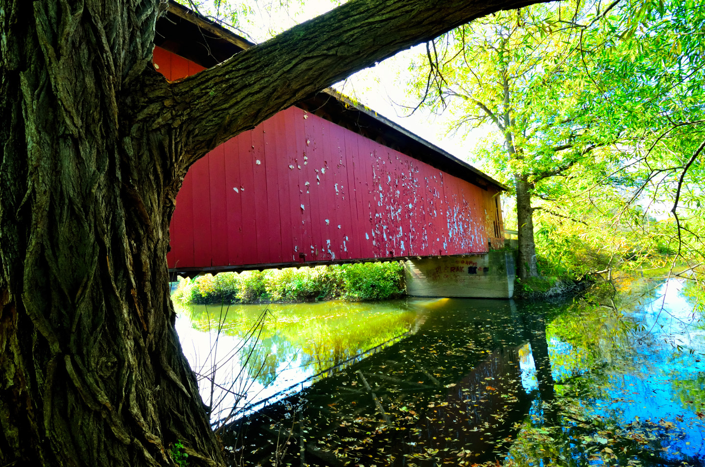 What we wanted was a casual day trip, no more than four hours of driving, there and back again. John and his wife Chris knew just the route that we should take. Since we were going to Vermont, the land of covered bridges, they thought it would be appropriate to show me a covered bridge near Erie, in the little town of Waterford. The Bridge, built in 1875, had been out of commission for quite some time when we stopped by, a favorite canvas for local graffiti artists. Since then, the bridge has been disassembled, repaired, and completely rebuilt. In 2024, it was actually opened to traffic once again.