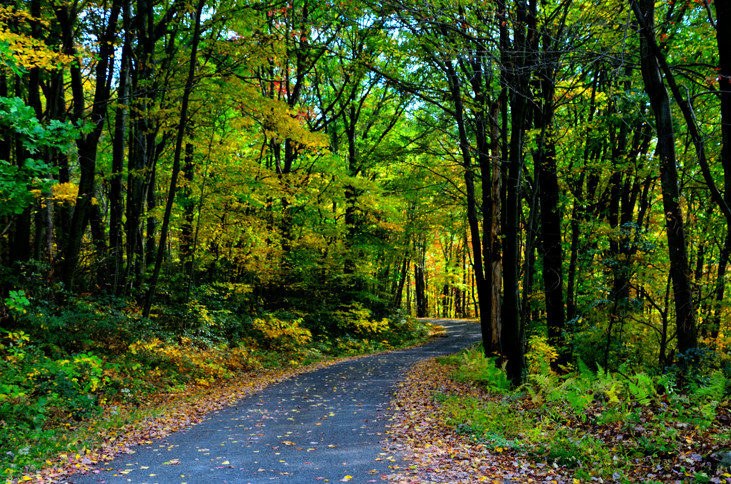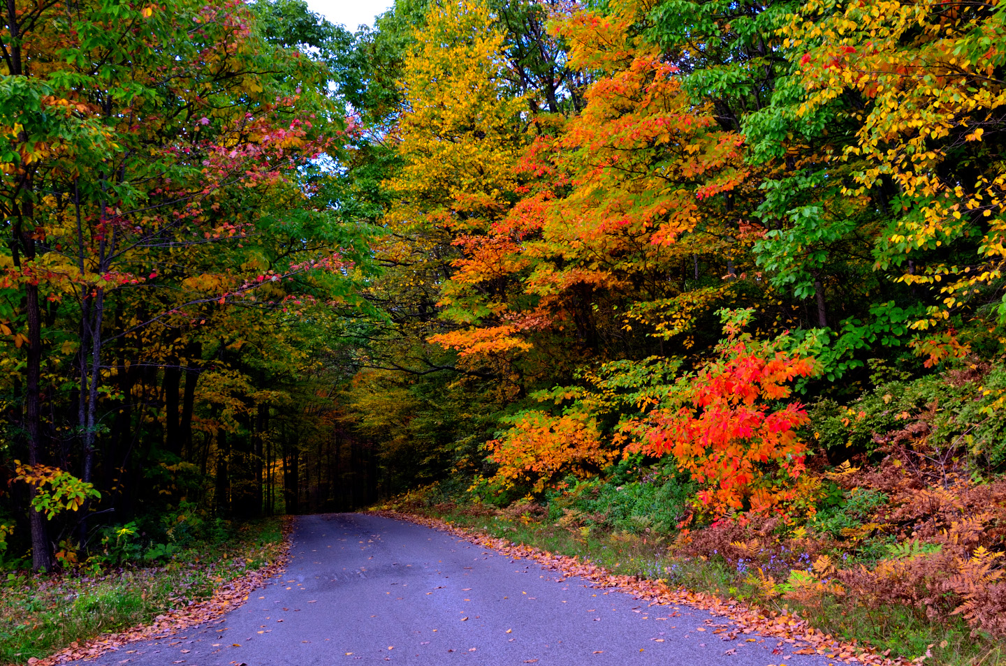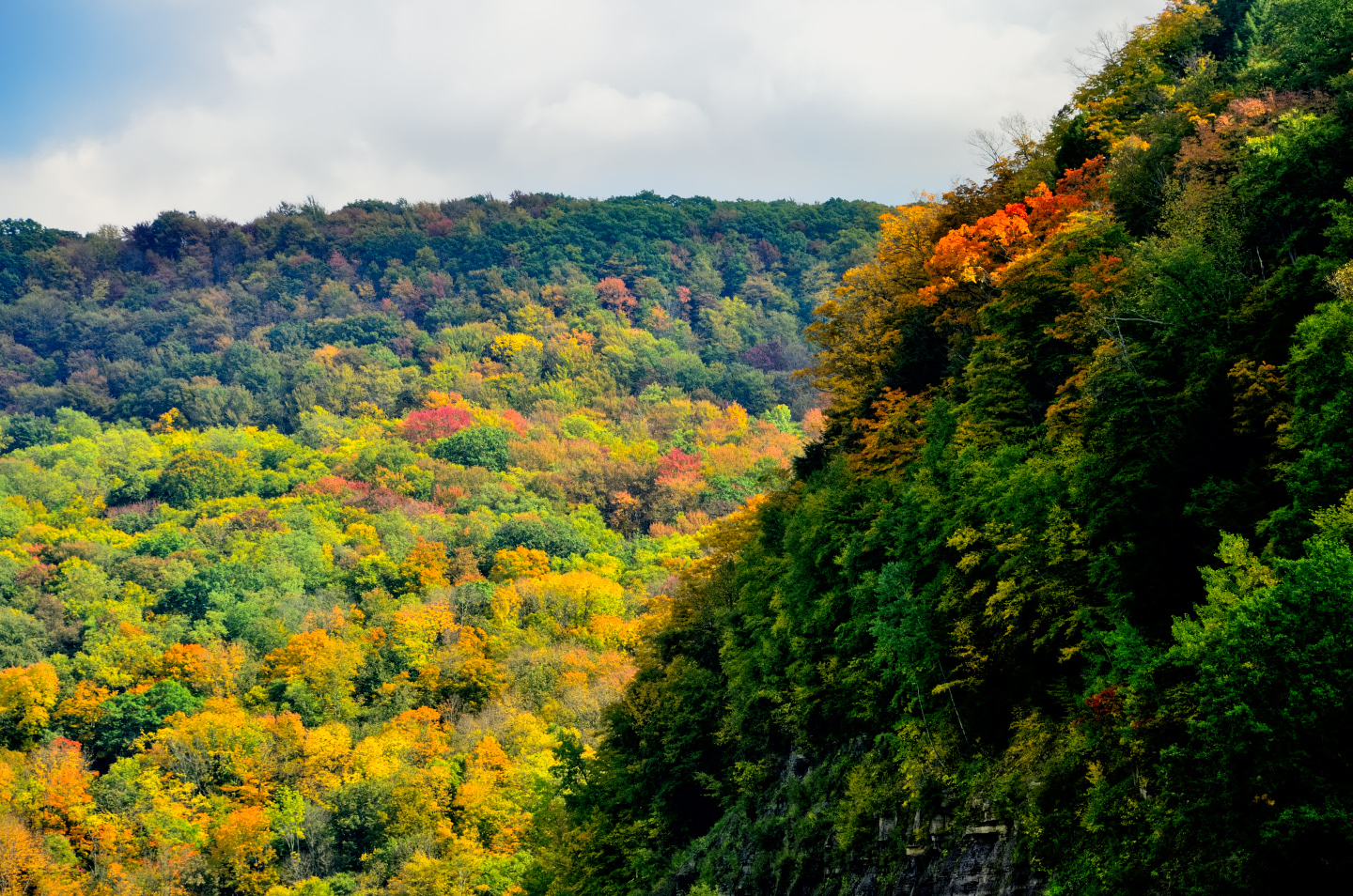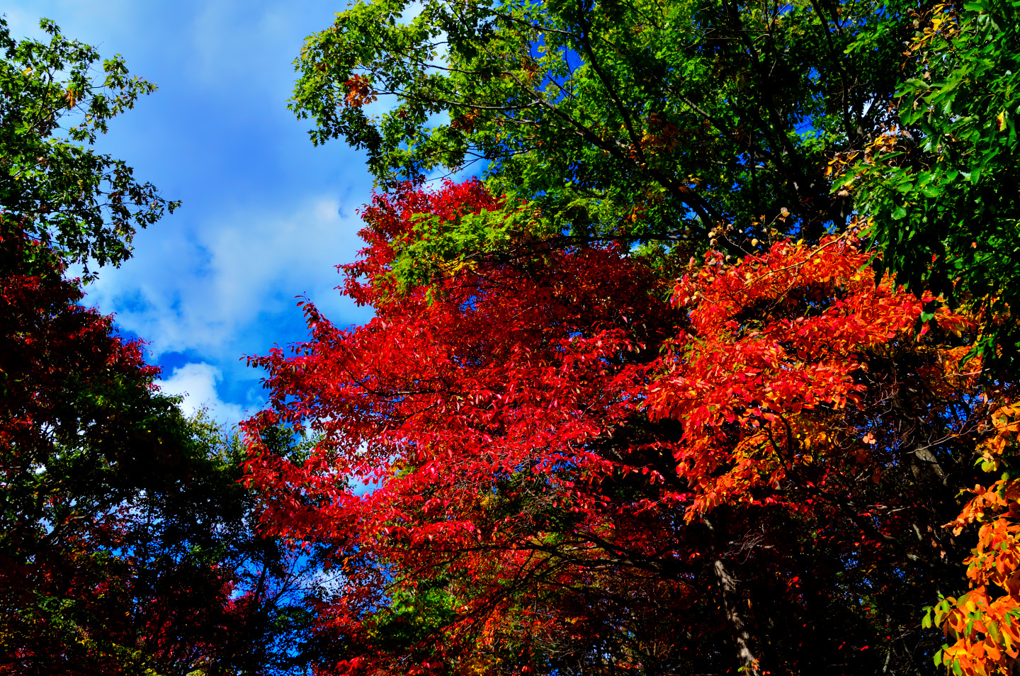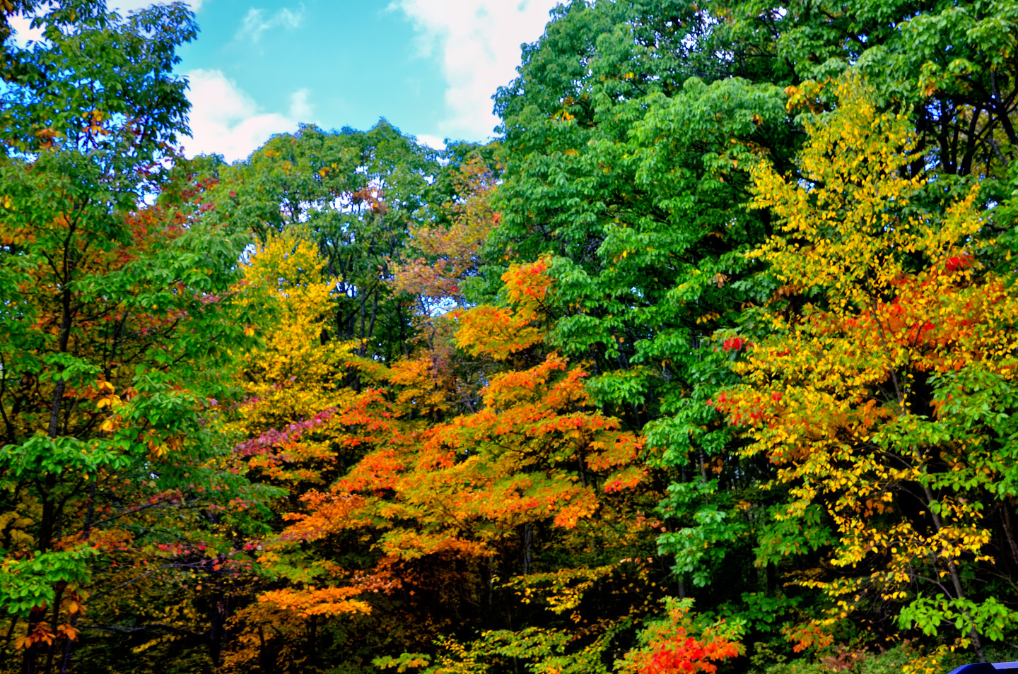 The six New England states, taken together, support more than 28 million acres of dense, mature forests. Some of it is evergreen, but most of it is deciduous, so, come the fall, you have more than ten BILLION trees changing color and losing their leaves, all over the course of a couple of weeks.