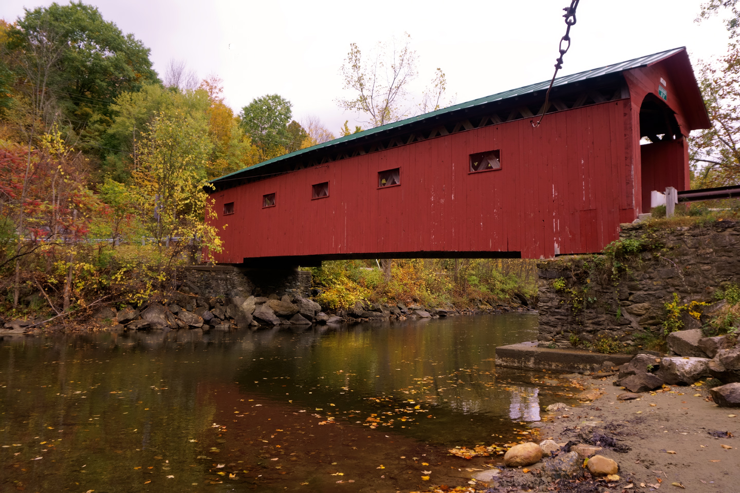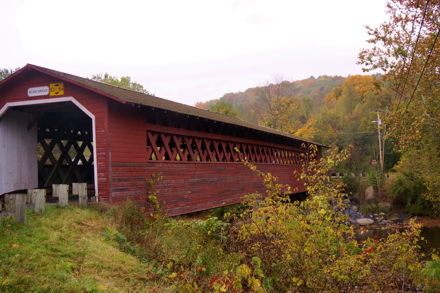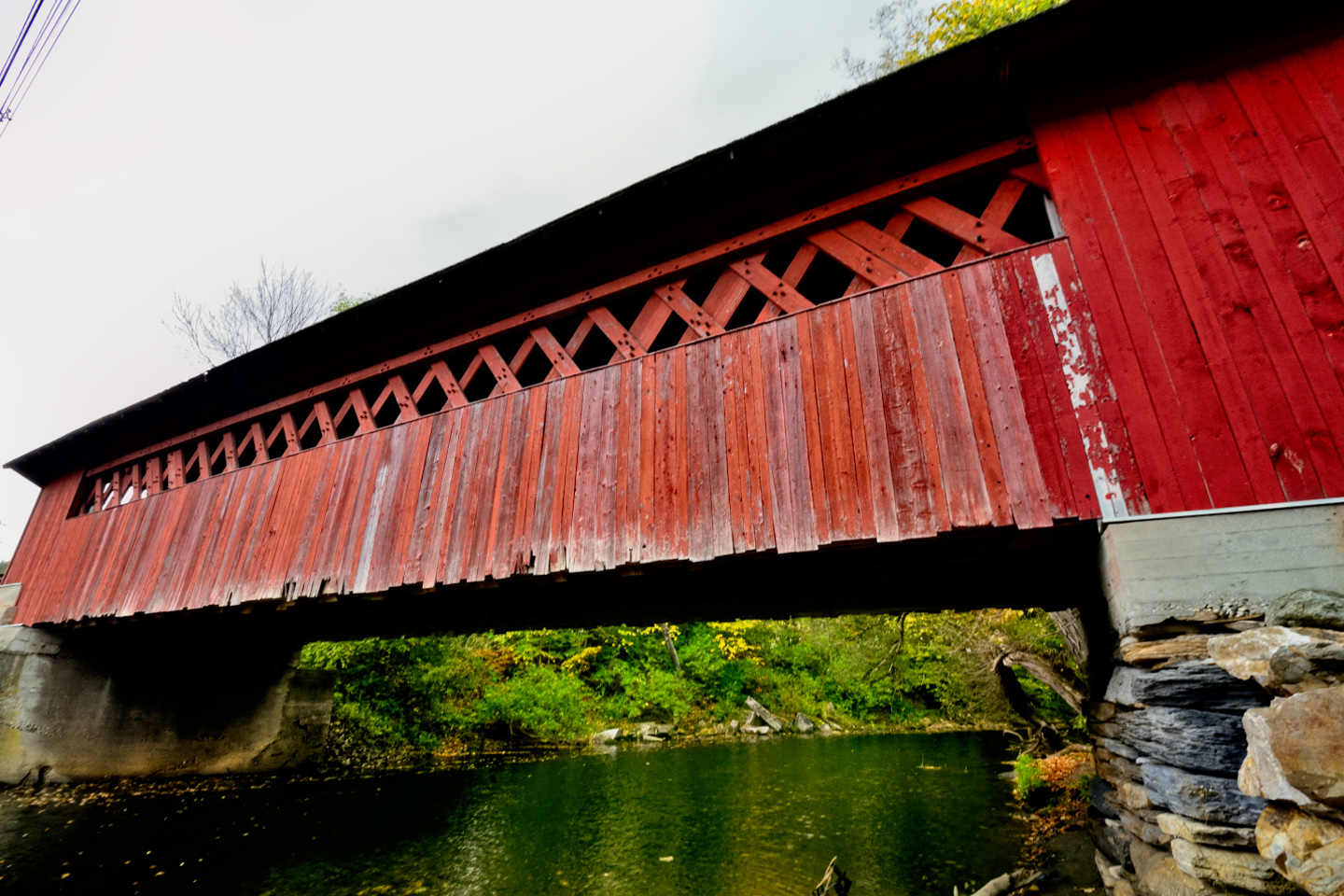 The bridge sustained damage from flooding caused by Hurricane Irene in 2011, but it was repaired and reopened to traffic just a few months later. The design of the bridge is Town lattice truss, like the bridges we saw in Bennington. All of these bridges were added to the National Register of Historic Places in 1973; they rank among the most cherished, as well as the most photographed landmarks in the entire state.