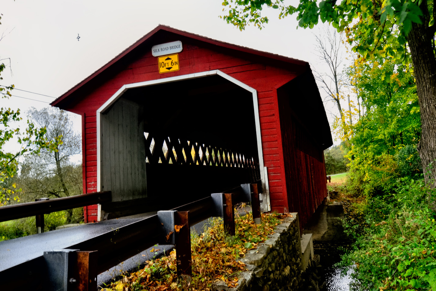 Built in 1840 (almost 200 years ago!), the Silk Road Bridge connects the Silk Road area south of the river with the rest of the town of Bennington. The bridge design is called Town lattice truss, which was patented in 1820 and prized for its strong, efficient structure that was lighter and less expensive than other designs of the time. Putting roofs on bridges was an innovative solution to the problem of weather damage, resulting in less need for maintenance, and greatly extending the lifespan of these iconic structures.