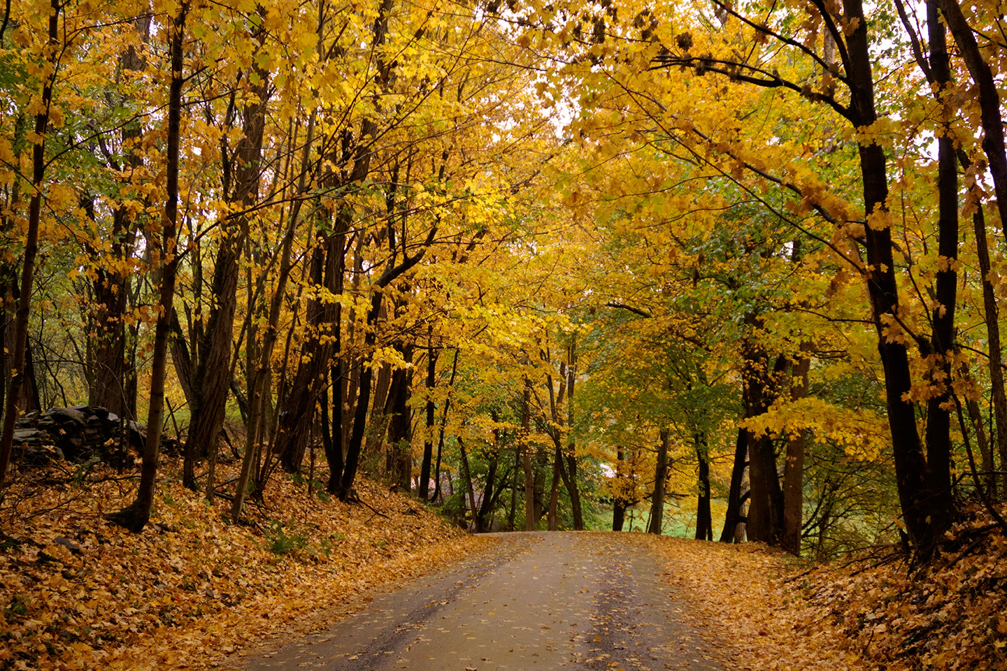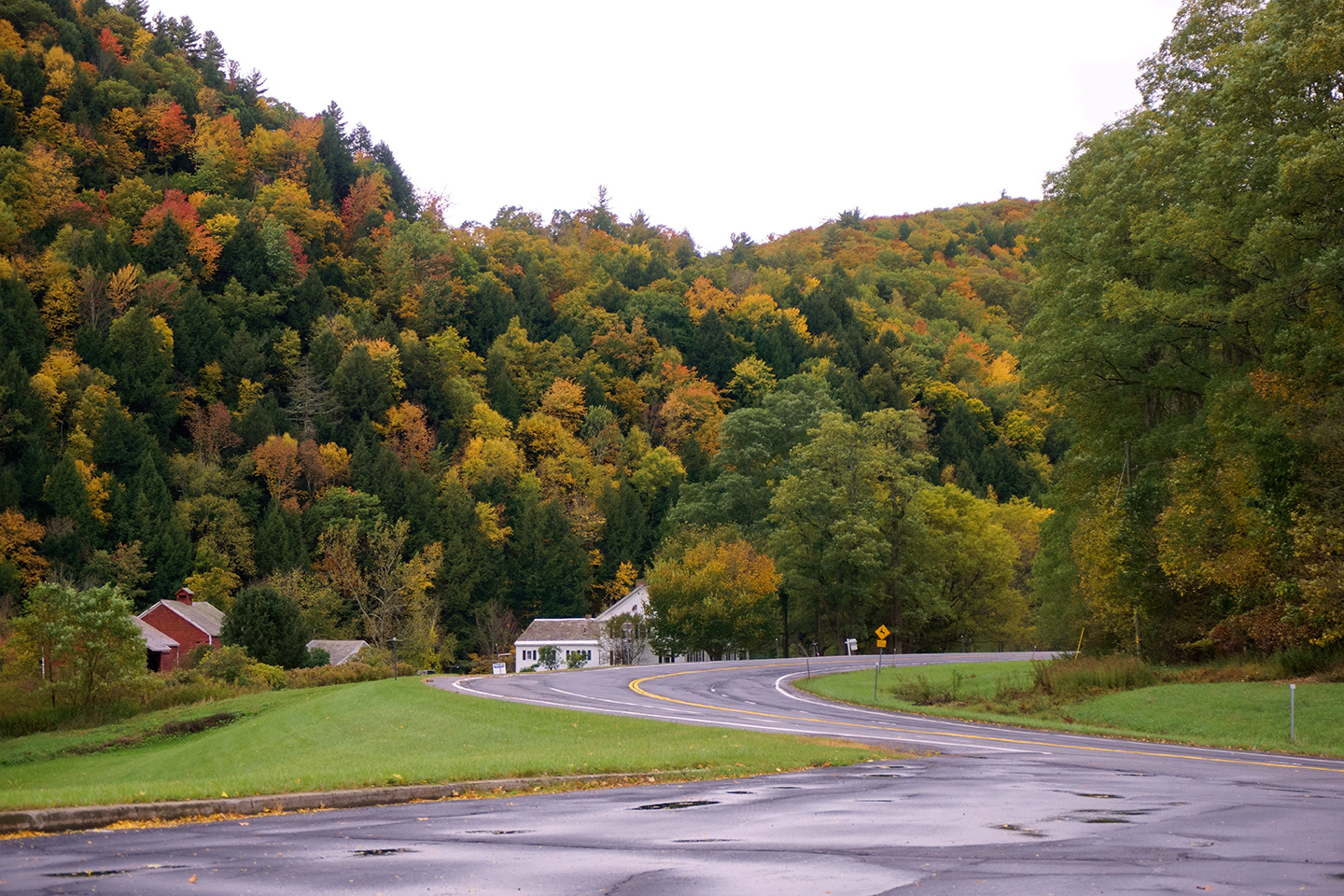 In the Arizona desert, where I was born and raised, we only have two seasons: hot, and less hot. Washington County, New York, by contrast, gets all four of the seasonal shifts, and we were smack dab in the middle of the best of the best. The weather was lousy that aternoon, drizzling rain throughout our drive, but the autumn woods were gorgeous, and there was a softer quality to the light that you don’t get when the sun is shining brightly on the scene.