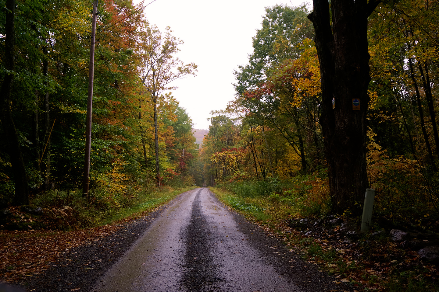 We had coffee and pastries and enjoyed the music for an hour or so, but we hadn’t driven all the way to Vermont to sit around indoors, so we made plans to reconnect with Barry in the afternoon, and we headed back out to the hills. The weather was drizzling rain with patches of fog here and there, but it was still very pretty.