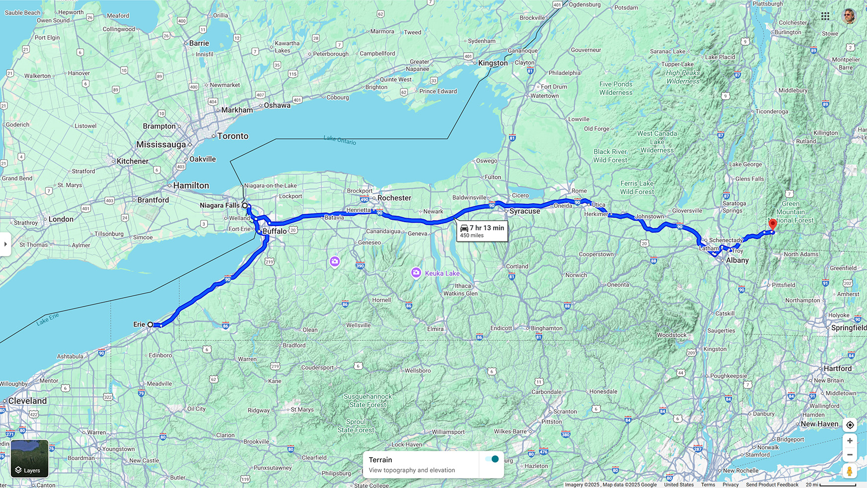 I only had a week for this trip, and figuring all the travel time, my detour to northern Pennsylvania was using up almost half of it. Since Vermont was the goal, I figured it best to get there as quickly as possible, and to that end, our drive from Erie to Bennington was a “blinders-on” speed run, sticking to Interstate 90. I have no doubt that there was wonderful stuff to see on the back roads and in the mountains of upstate New York, but there simply wasn’t enough time, so our only deviation off the Super Slab was a very quick side trip to Niagara Falls, which is a not-so-quick 20 miles north of Buffalo.