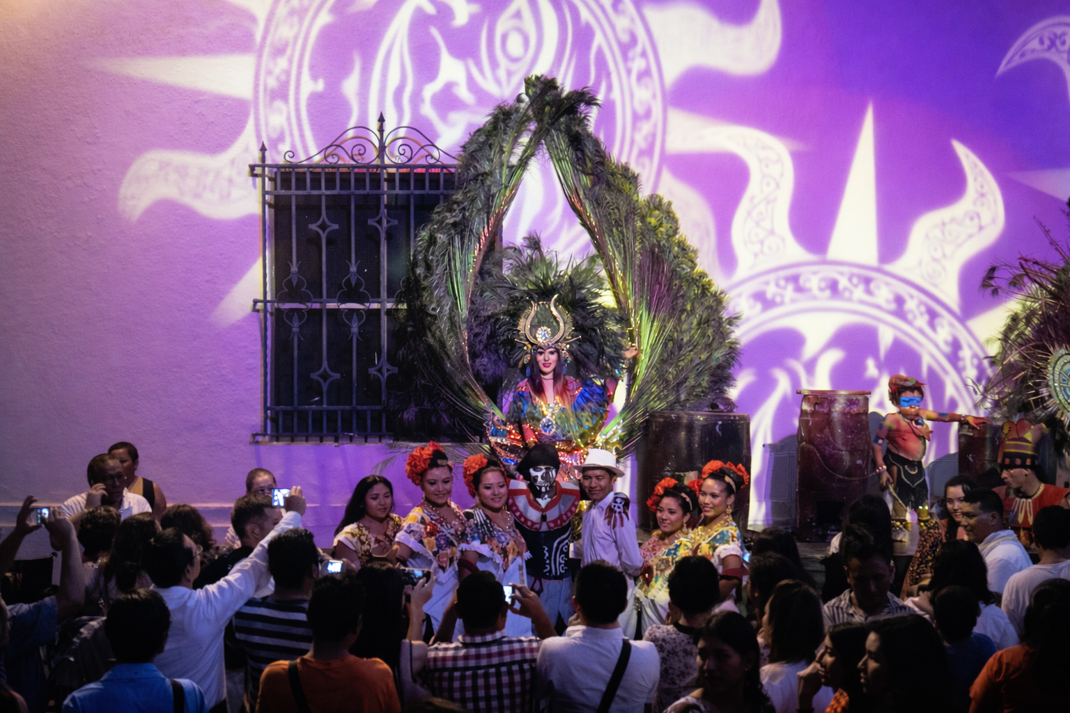 The festival features performers in costumes with a Mayan flair.